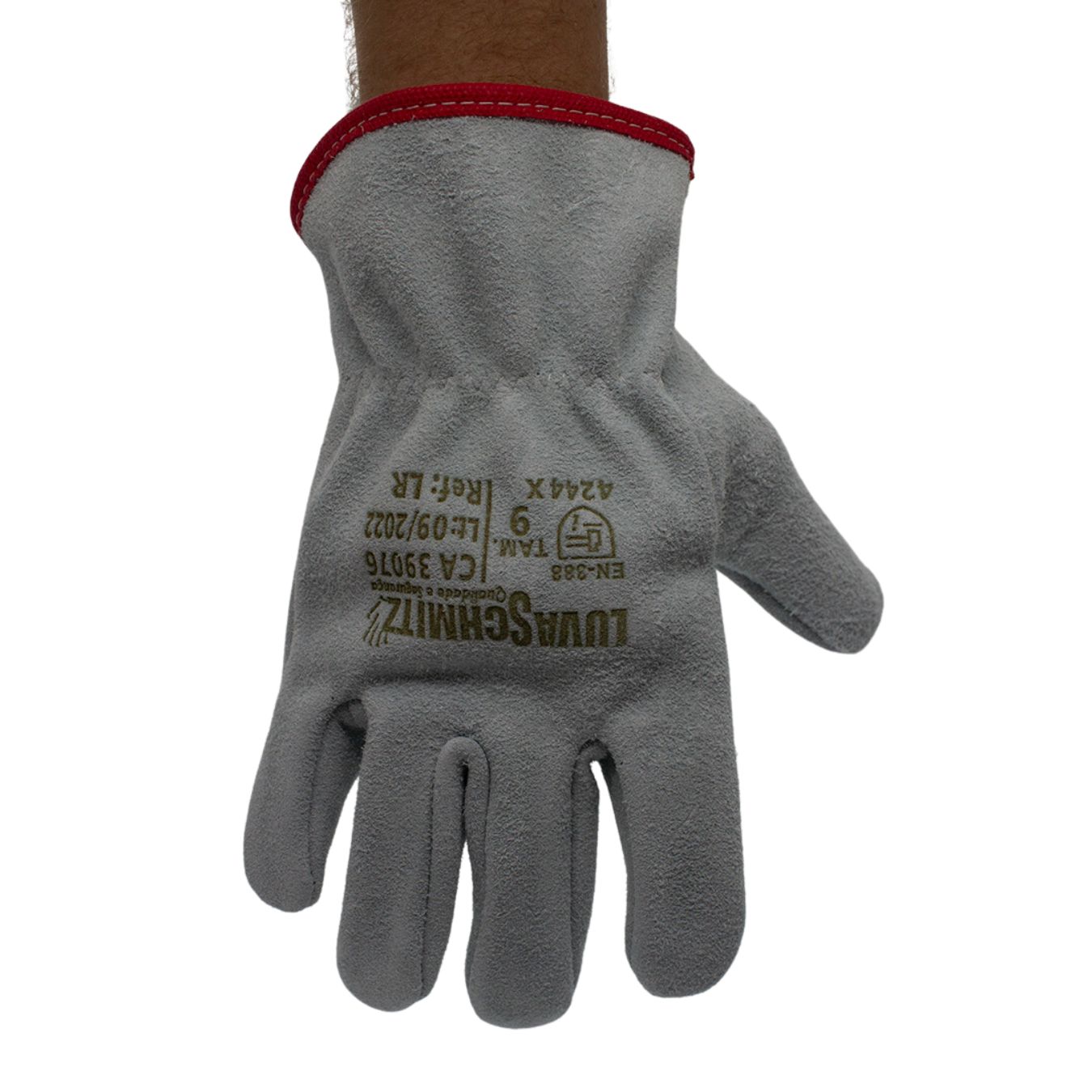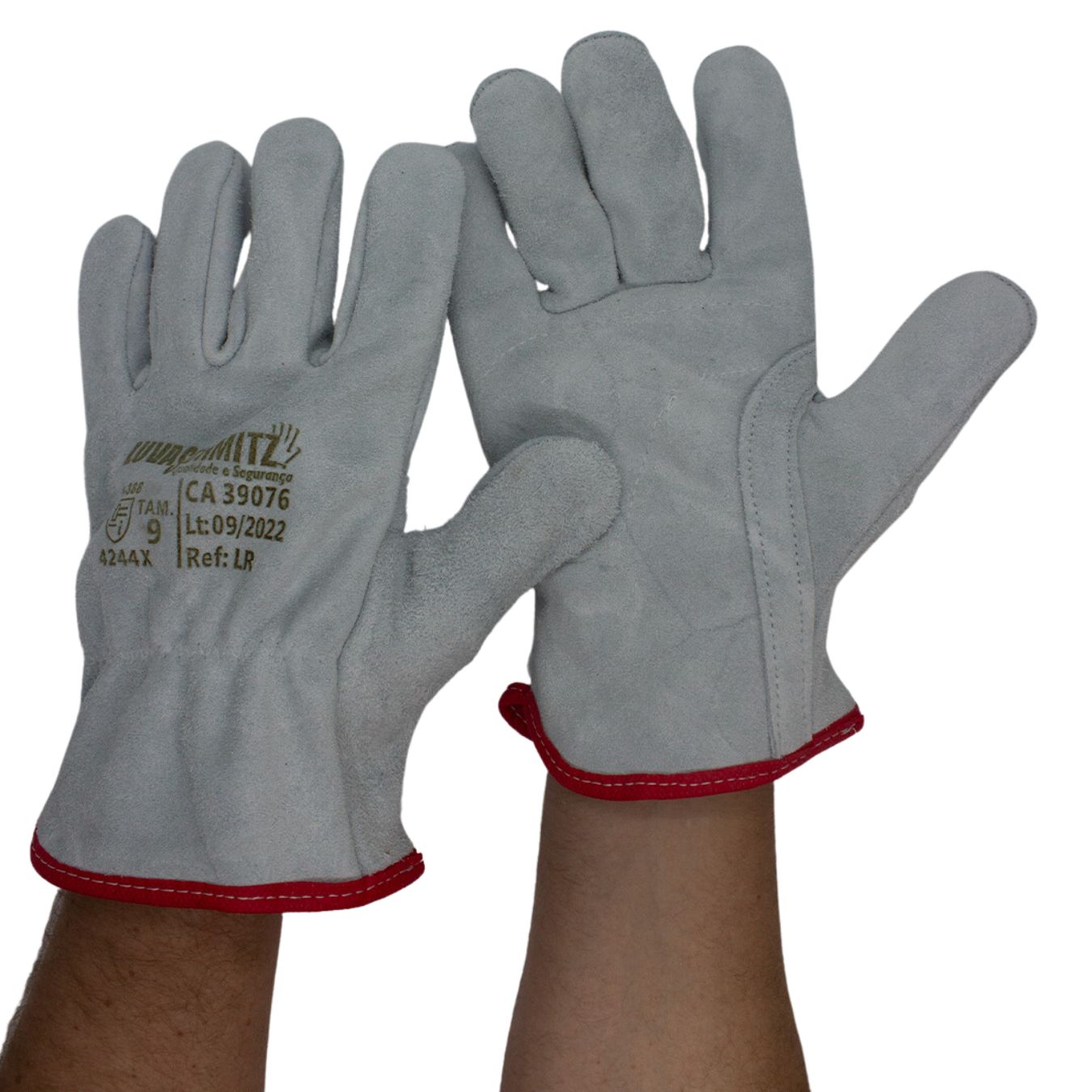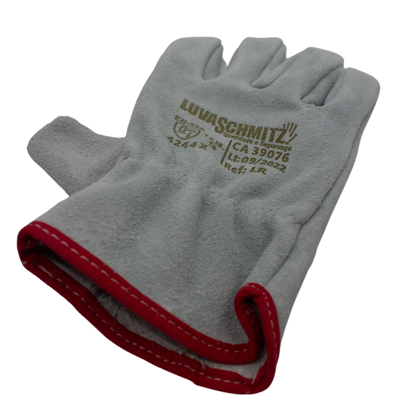 Luva de Raspa Petroleira com viés vermelho. Pacote com 10 Pares.
